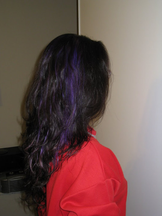 四月之時,正妹朋友J想染頭髮,她上網查了很多資料才找到Manic Panic這個牌子;起初她跑了約莫兩、三家才找到這種亮藍色,不過那不是她真正想要的,既然買了也沒打算退,接著再找了幾家,終於才找到她要的,那是我只敢遠觀不敢嘗試的顏色:藍紫色。這種顏色的染髮劑比較麻煩的是,必須先買一種化學藥劑把妳原有的髮色褪去變成淺金色,隔個幾天才能上藍紫色。