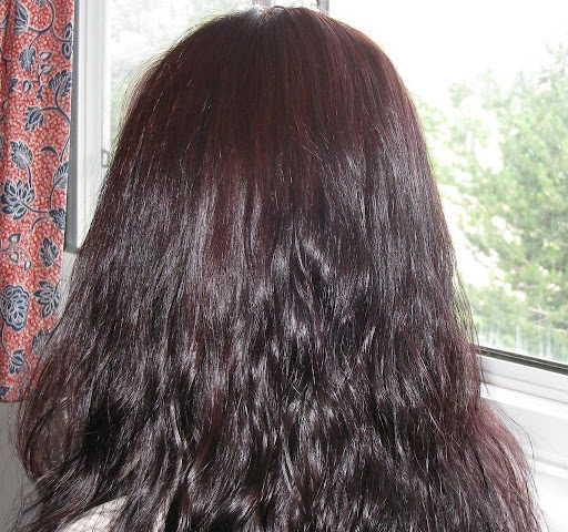 這次的過程也算曲折:周太太說我挑染的部份顏色太淺,必須先把那些染成深色,才不會造成吃酒紅色這個染劑吃太多,那會變成原本淺色的變超紅、原本的髮色反而比較淡;於是她花了一番功夫才幫我把淺色的部份染好放了半個小時,再整頭染酒紅色,才是現在的樣子。