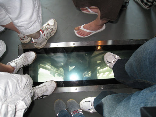 住在這的友人帶我上Glass Floor,很多人坐在玻璃上頭,我還在想是怎麼回事,友人把我拉過去站在上頭,低頭一看……
