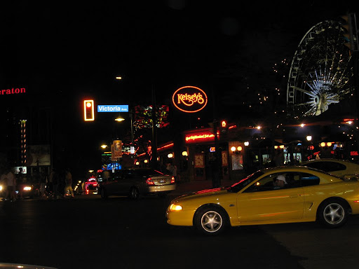 原來在飯店對面河畔,有這麼一場小小的嘉年華會。拖拖拉拉了一陣子,大夥決定先填飽肚子再說。開車上路找吃的同時,我們也沒錯過與多倫多不同的景色,