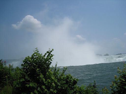 白茫茫的水氣似乎是要阻止人再更接近她雖然馬蹄型瀑布的力量如此驚人,依然敵不過人為破壞。由於加拿大這一頭的人們建了太多較高的建築物,只為一睹瀑布的芳容,使得馬蹄型瀑布的水氣無法順利飄散,已經影響生態;朋友說,馬蹄型瀑布已開始在慢慢往後退,不禁使人擔心會不會很久以後,後來的人們可能再也看不到馬蹄型瀑布了?