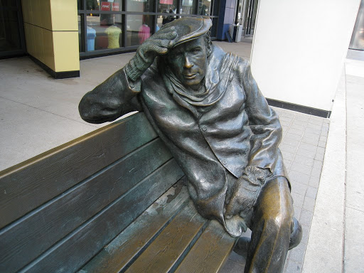 先生,你在跟誰聊天?唉唷,不要笑我眼睛不好,是個雕像啦!看他的模樣,好像很專心地在聽你講話呢!