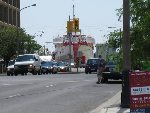 在門口遇到好心的服務人員指點怎麼走,出站後從Front St.轉向Yonge St.,總步行才十分鐘就看到碼頭囉!