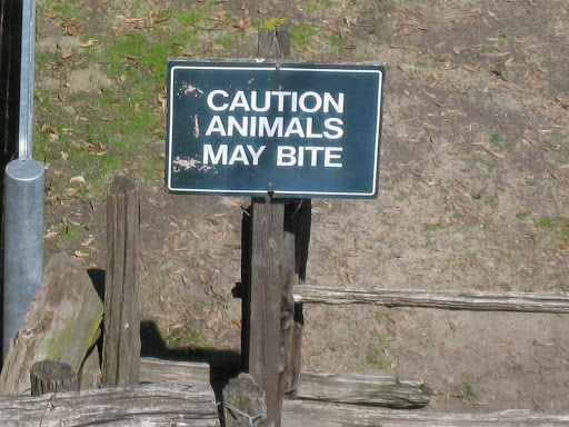 注意:動物可能會咬人告示牌